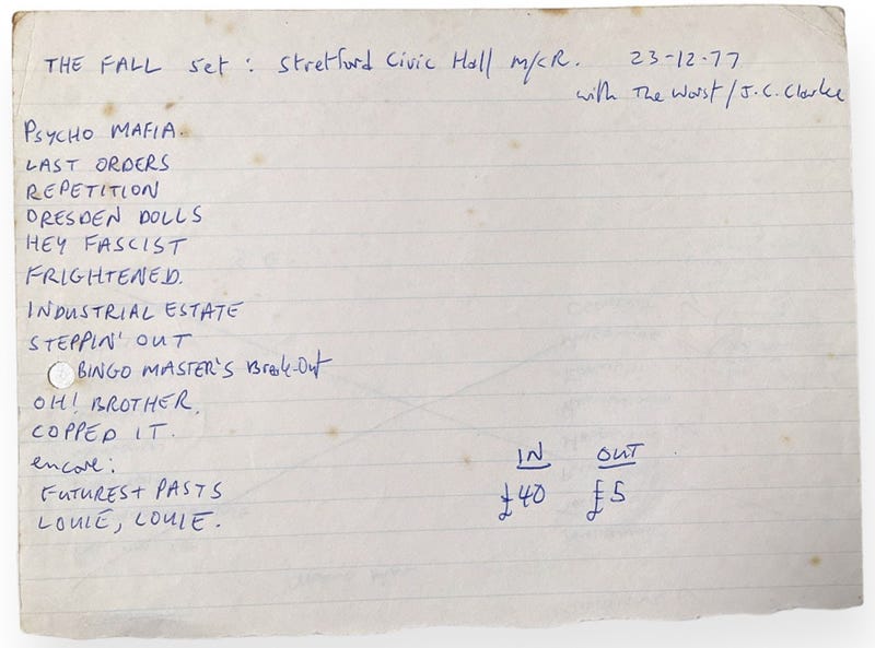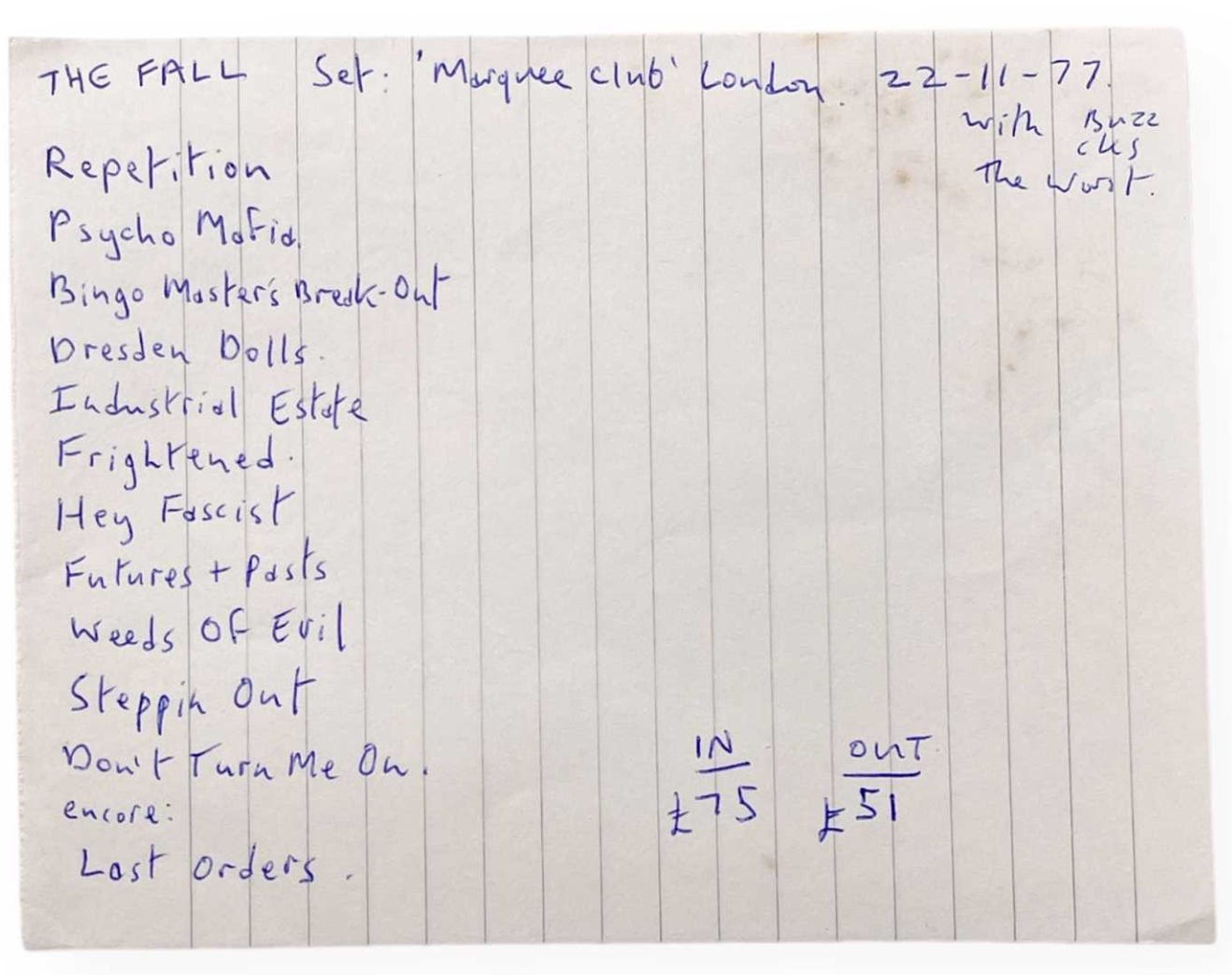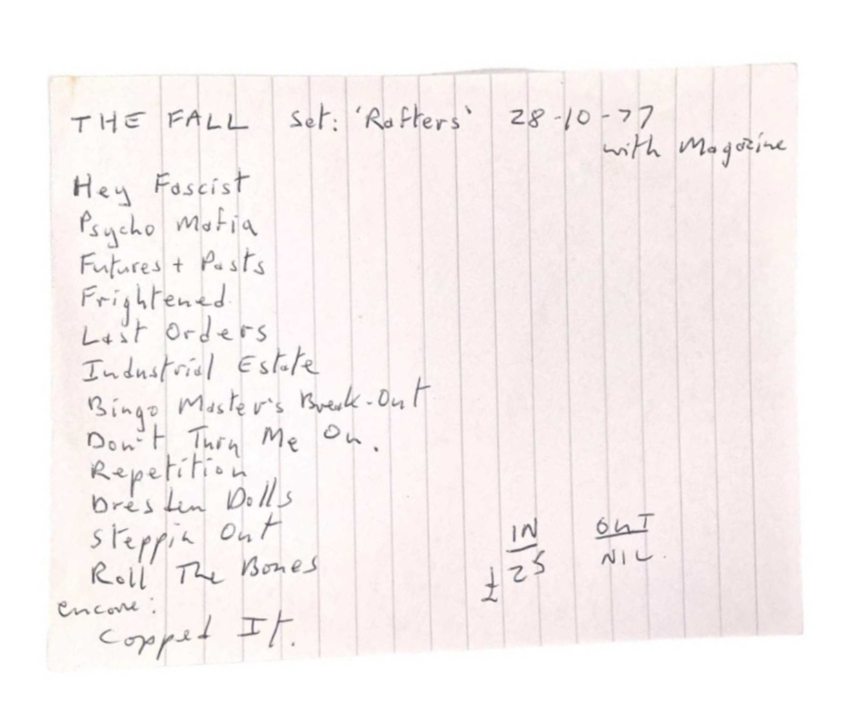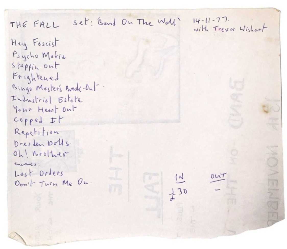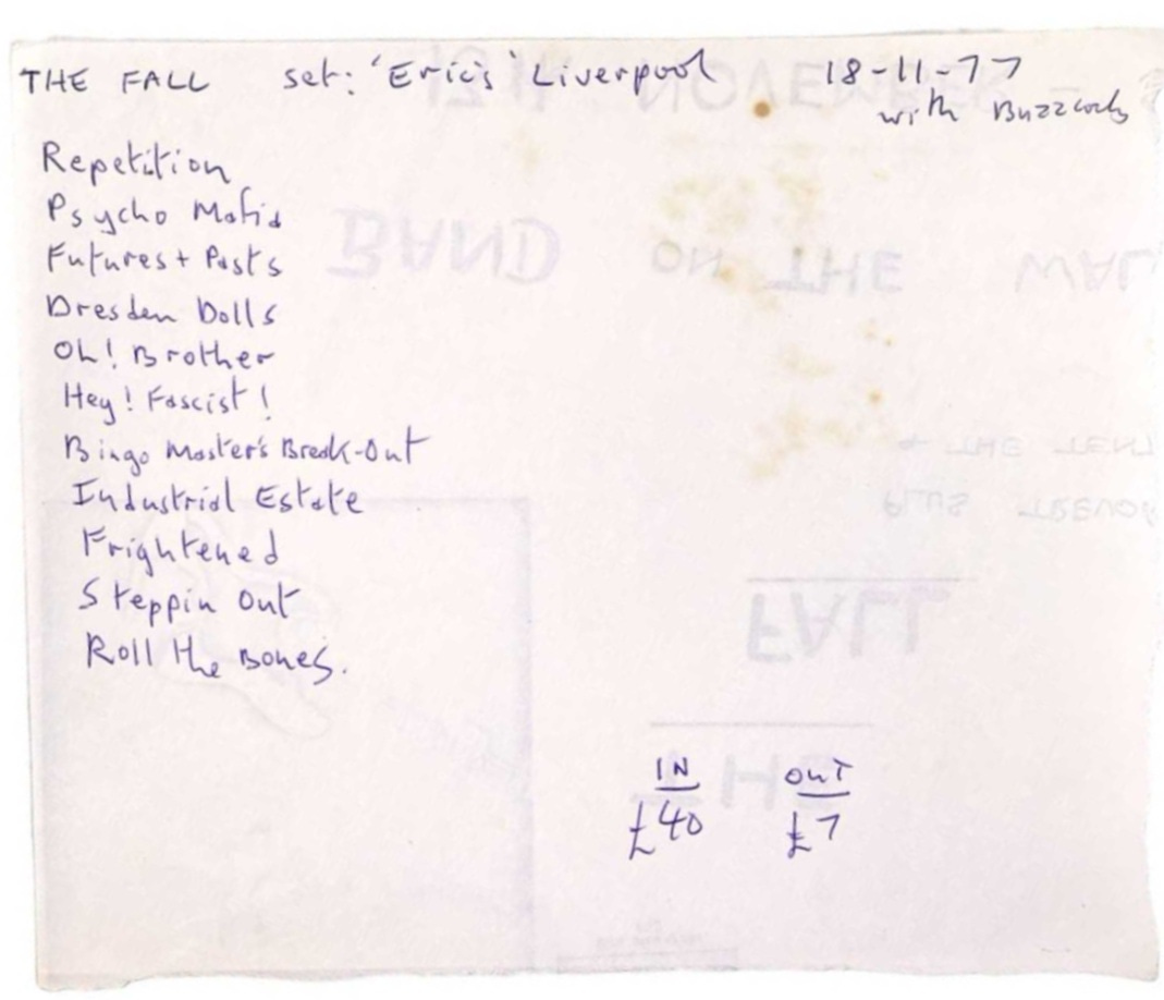 The set was recorded and appears as part of The Fall: The 1970s, 12CD Box Set – released November 2022 via Cherry Red. The version of Bingo-Masters Breakout from this gig appears on the The Indie Scene 7816 release. The second airing of Your Heart Out which would be retired after this show to re-appear in 1979.